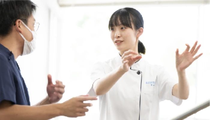 POINT 02専門学校は理学療法・作業療法の分野について実践的で専門的な内容に特化しており、病院や福祉施設など現場で働くために必要な知識と技術をより深く学ぶことができます。一方、大学は専門分野のほかに自分の興味のある分野や一般教養なども学びます。資格取得のための授業や実習の内容に違いはありません。